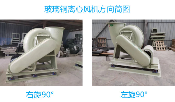 在采購玻璃鋼離心式風(fēng)機(jī)時,風(fēng)機(jī)方向的完整表達(dá)方式如左旋90°、右旋180°、左旋180°等。